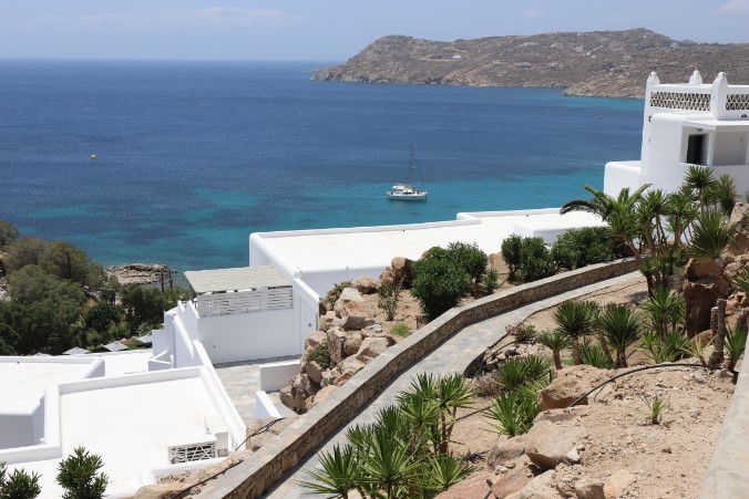 결혼식 끝나고 바로 11시까지 인천공항으로 가서 새벽 1시 비행기를 타고 아부다비에서 경유 했다가 그리스 아테나에 도착 쉴틈없이 바로 미코노스로 가는 비행기에 탑승... 너무 힘들더라구요~  그렇지만 저희 부부는 아름다운 미코노스와 산토리니를 생각하면서 인내심 끝에 오후에 도착하게 되었네요~ 도착하자마자 호텔로 가는 버스를 타고 이동하였는데요. 미코노스는 사실 무라카미 하루키가 쓴 먼북소리라는 수필집에 나왔던 배경 장소라서 너무 기대를 하면갔을까요요. 책에서 만큼은 아니지만 미코노스 섬만의 조용하고 평화로운 느낌이 너무 좋았습니다.