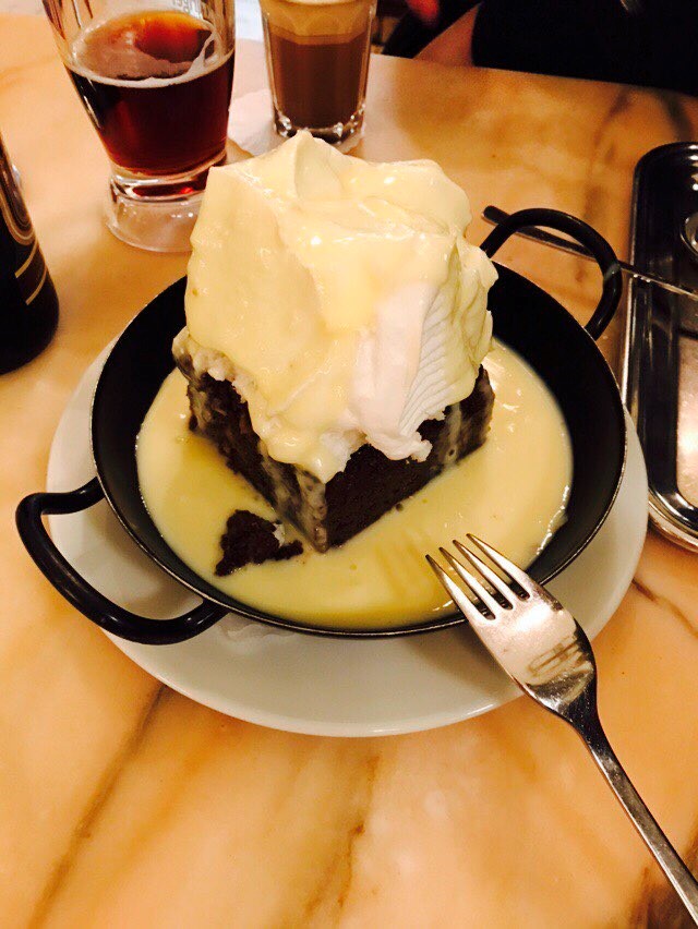 자허토르테는 조밀 한 초콜릿 케이크로 이루어져 있었다. 케이크 상단에 있는 달지 않은 얇은 층의 살구잼이 촉촉함을 더해주었다.