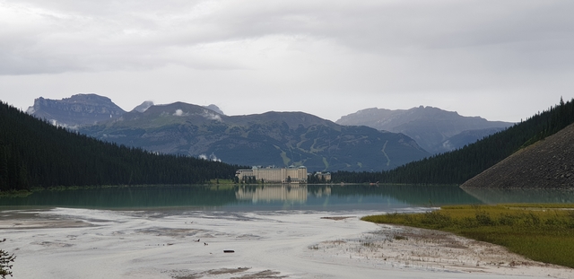 레이크루이스바로 앞에 있는 페어몬트 샤토 레이크 루이스 호텔은