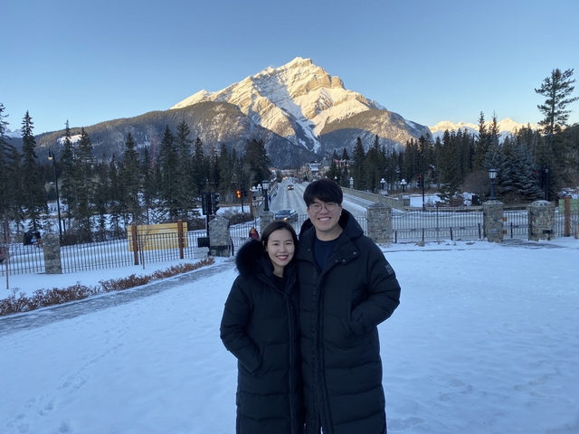겨울에 결혼해 더 추운 옐로우 나이프와 밴프로 신혼여행을 다녀온 따끈한 신상부부입니다.