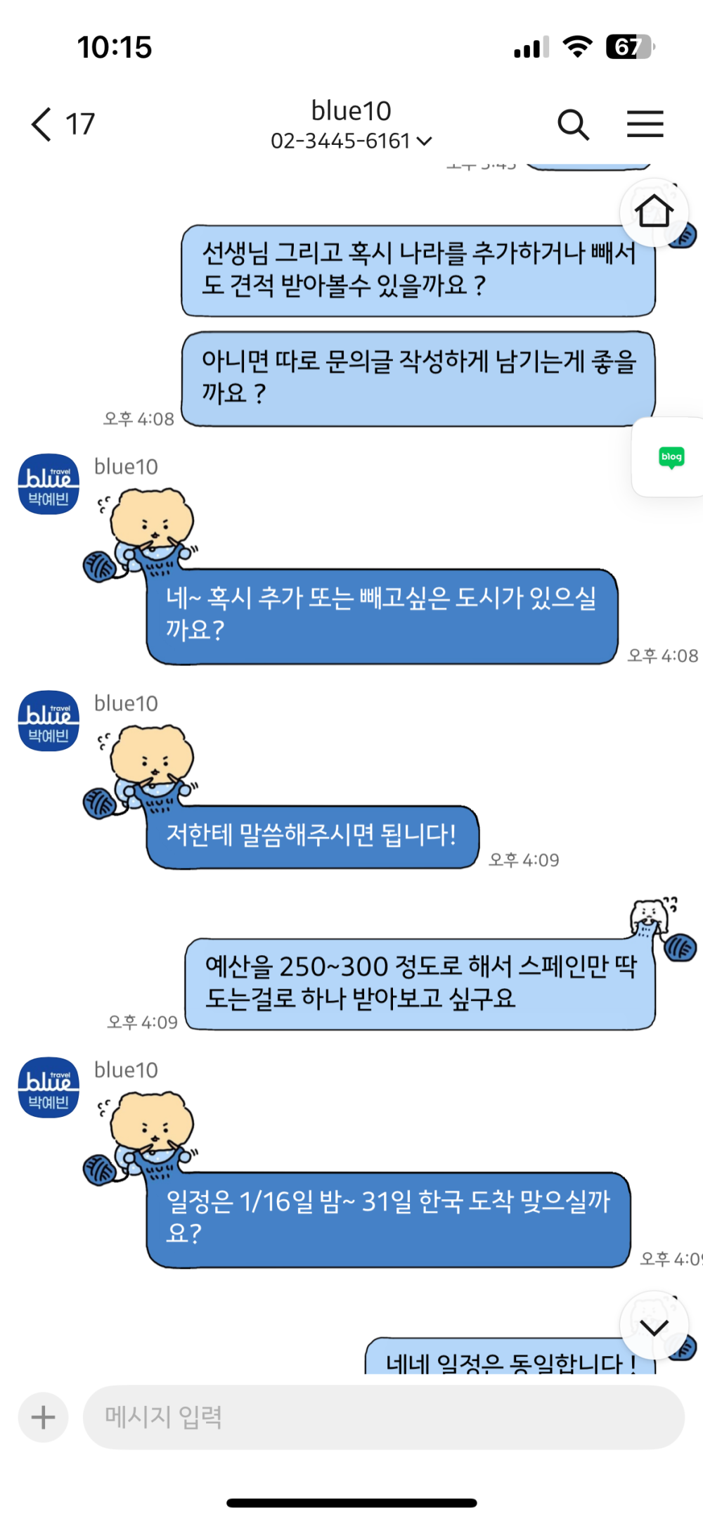 여행사 블루 이용 후기 쓰는건지 모르겠지만 ...