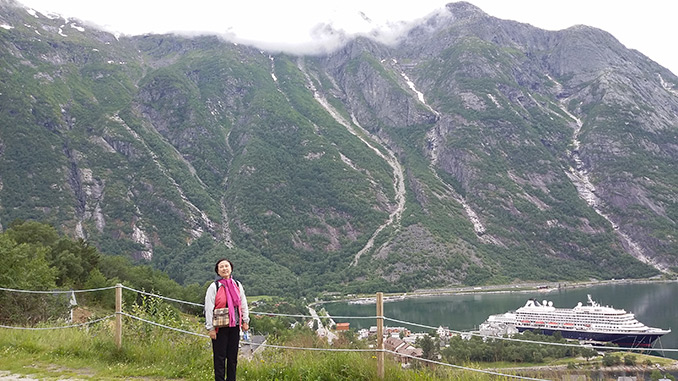다음 날 게이랑게르 피요르드를 보면서 게이랑게르에서 도착한 후, 달스나바 정상(1,700m)까지 버스로 올라갔다. 그 가파른 산길을 버스로 굽이굽이 올라가는 것이 스릴이 있었다. 정상에는 7월인데도 눈이 남아 있었다.