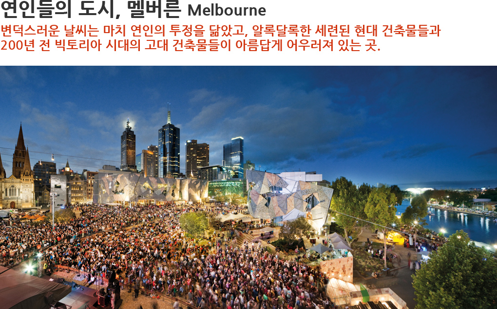 연인들의 도시, 멜버른 Melbourne : 변덕스러운 날씨는 마치 연인의 투정의 닮았고, 알록달록한 세련된 현대 건축물들과 200년 전 빅토리아 시대의 고대 건축물들이 아름답게 어우러져 있는 곳.